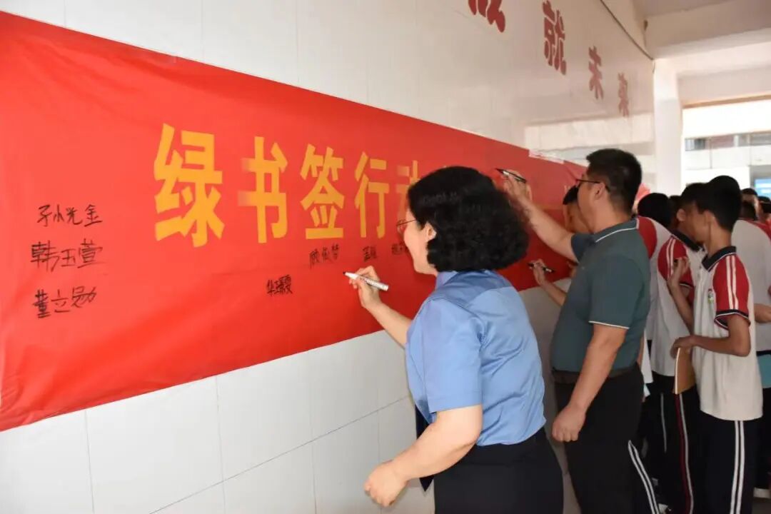 讲课结束后,与会学生们在“绿书签行动·护苗2023——护助健康成长,拒绝有害内容”的条幅上纷纷签上自己的名字,以显示自觉抵制不良信息的决心与信心。