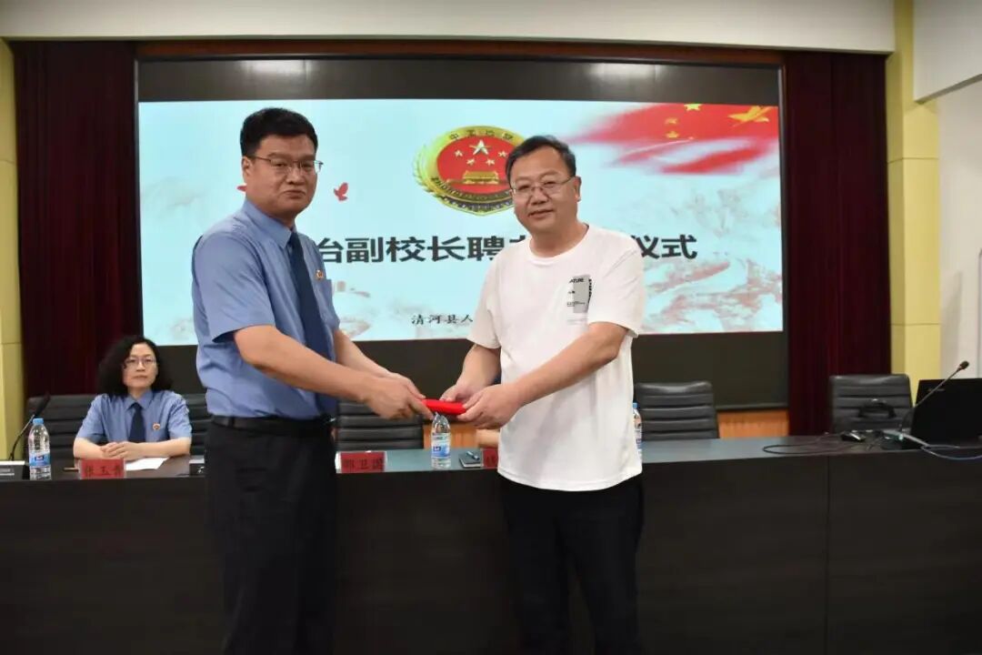 为深入开展“四型机关建设”,进一步加强未成年人保护工作,6月15日,检察官担任法治副校长聘书颁发仪式在清河中学顺利举行,清河县人民检察院党组书记、检察长邵卫国、县教育局元宝卿科长、清河中学校长曹广彬、相关学校代表及师生代表到场参加活动。